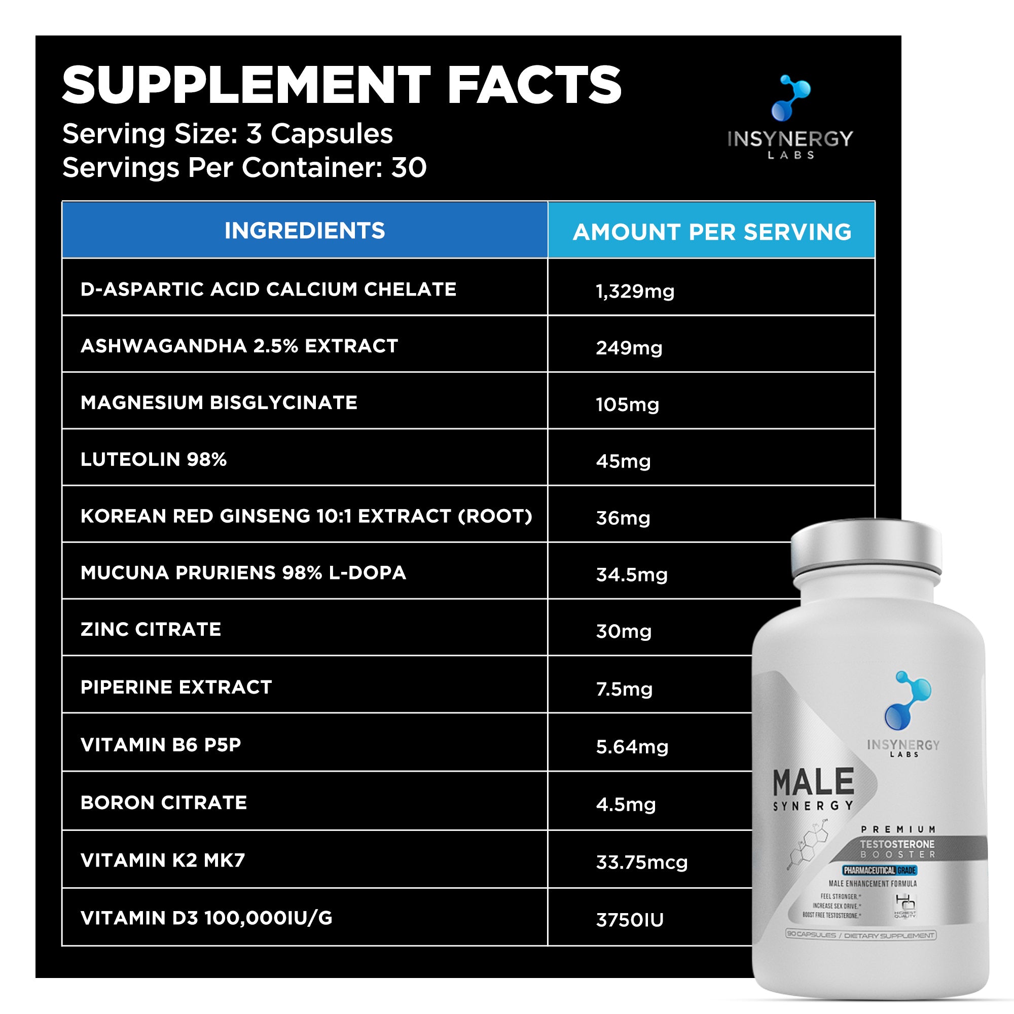 Insynergy Labs have carefully selected 12 of the best natural testosterone-boosting ingredients all backed by extensive clinical claims in the optimal daily dosages which means maximum effect in minimal time.